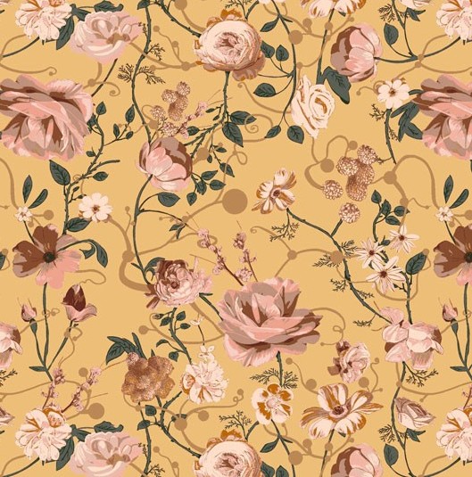 Altrosa farbige Rosen mit grünen Blätterranken auf Beige, 100 % Baumwolle, Breite 112 cm