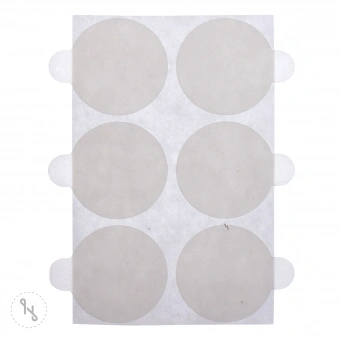 Patch zum Fixieren vor dem Nähen oder Sticken von Applikationen, Etiketten, Stickbildern, Volumenvlies auf Stoff, Stoff auf Stickvlies, fixiert auch Leder, Wachstuch und vieles mehr. Gebrauch: Trägerpapier entfernen, auf die gewünschte Stelle platzieren, etwas andrücken. Abdeckpapier abziehen und das zweite Gewebe auflegen. Gut zusammengedrückt kann nichts mehr verrutschen und die Stoffe können nach belieben gequiltet und genäht werden; das lästige Vorstecken entfällt. Patch ist nicht auswaschbar aber waschmaschinen- und trochnerfest. Inhalt: 60 Punkte, Durchmesser 30 mm