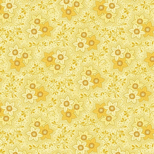 Narzissendruck Ton in Ton gelb, 100 % Baumwolle, Breite 112 cm