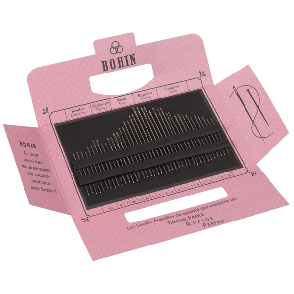 (Eine Sonderedition zum 185-jährigen Jubiläum der Marke Bohin. Die Außenseiten der Nadelmappe sind mit Abbildungen der BOHIN-Ikonen Solange, Edwige oder Marlène bedruckt. Sie waren das Symbol für das BOHIN-Image in den 20er, 30er und 50er Jahren.)