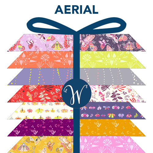 FAT QUARTER Bundle AERIAL von Windham Fabrics - 19 Stück perfekt aufeinander abgestimmt Stoffzuschnitte in Frühlingsfarben mit Schmetterlingen, Blumen und Blättern, 100 % Baumwolle
