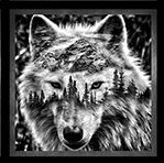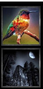 Stoffpanel mit 12 Tier- und Landschaftsmotive in farbig und schwarz weiß, im Block 32 x 32 cm (12" x 12"), Tiere mit mystischem Druck im Körper. Sehr authentische Bilder für einen reizvollen Quilt oder als Einzelmotive z. B für Taschen, Kissenhüllen usw.
