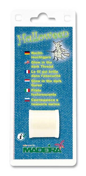 Halloween Nachtleuchtgarn ist waschresistent, es speichert das Licht und gibt es wieder ab, sodass es im Dunkeln leuchtet. Die Leuchtkraft ist von der Lichteinwirkung abhängig. Für alles Haushalts- und Stickmaschinen geeignet. 100 % Polyester, Snapspule 100 m