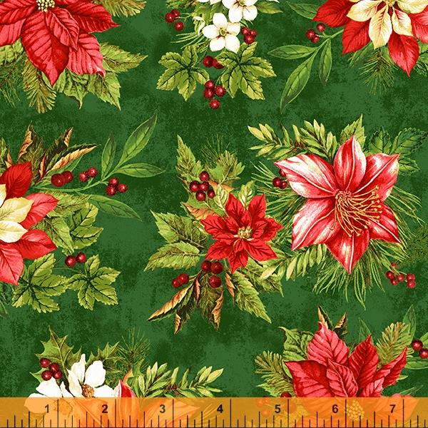 Rote Weihnachtssterne mit Blattwerk auf Grün, 100 % Baumwolle, Breite 112 cm