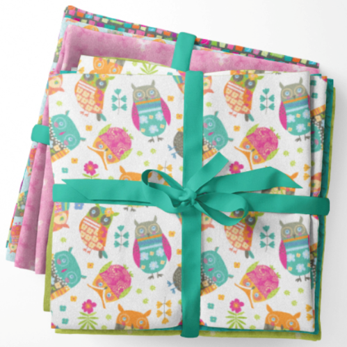 Fat Quarter Paket von Benartex im Trend der Zeit: bezaubernde bunte Eulen und viele Basic-Stoffe dazu. 18 Stück (18" x 21") entspr. 4 m x 1,10 m, 100 % Baumwolle
