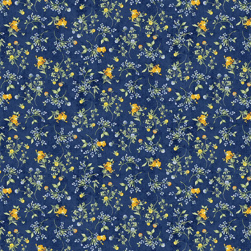 Kleine Blumensträuße mit gelben und blauen Blümchen gleichmäßig verstreut auf Navyblau,, 100 % Baumwolle, Breite 112 cm