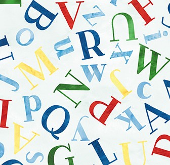 Ein fröhlicher Mix aus Alphabet und Ziffern in kräftigen Farben wie Blau, Rot, Grün und Gelb auf weißem Hintergrund., 100 % Baumwolle, Breite 112 cm